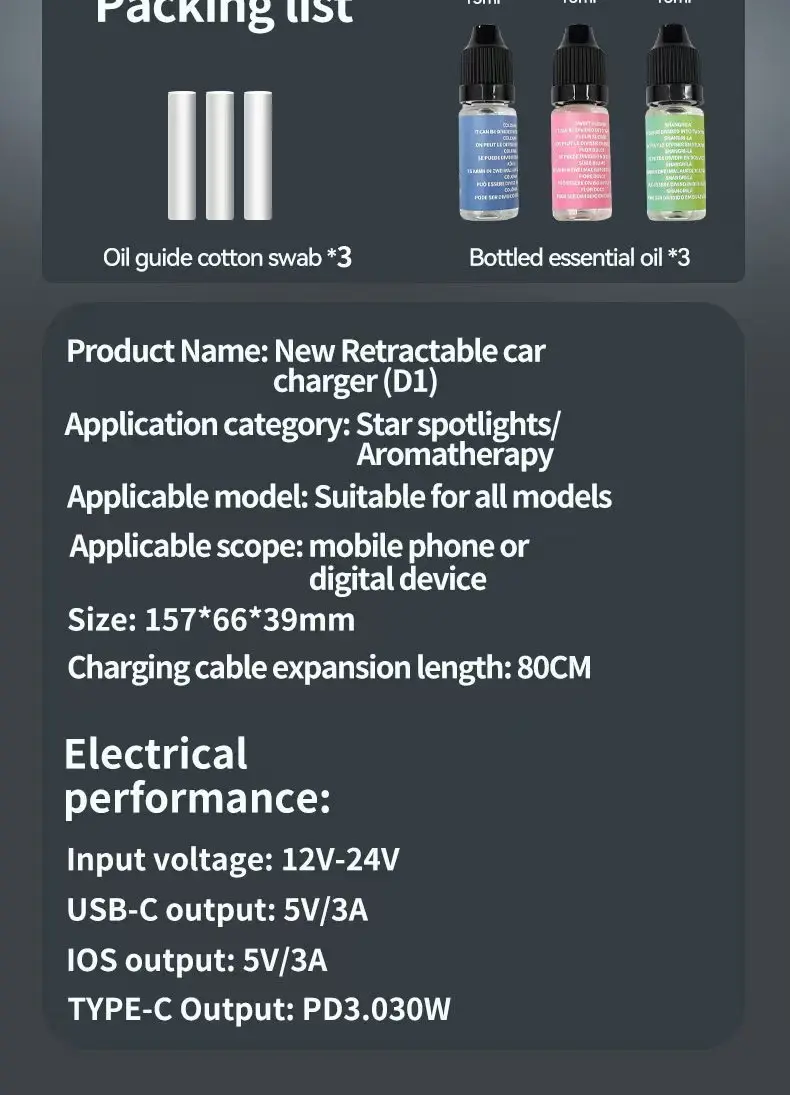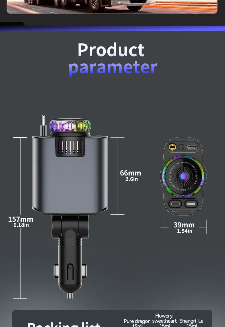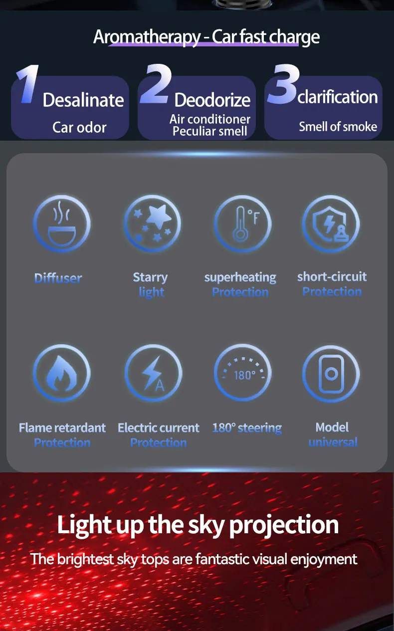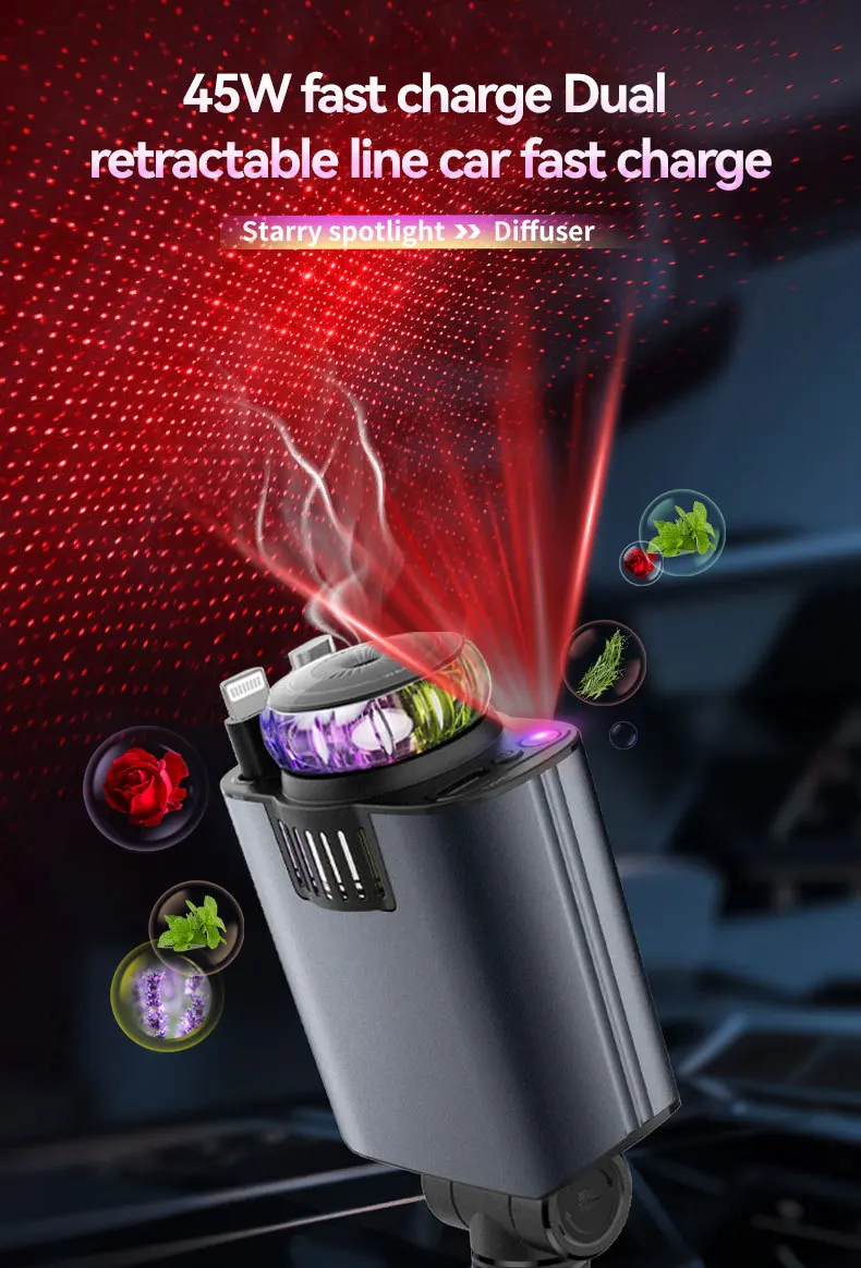 Car Aromatherapy Fast Charger 45W | Retractable Cable & Starry Light Diffuser