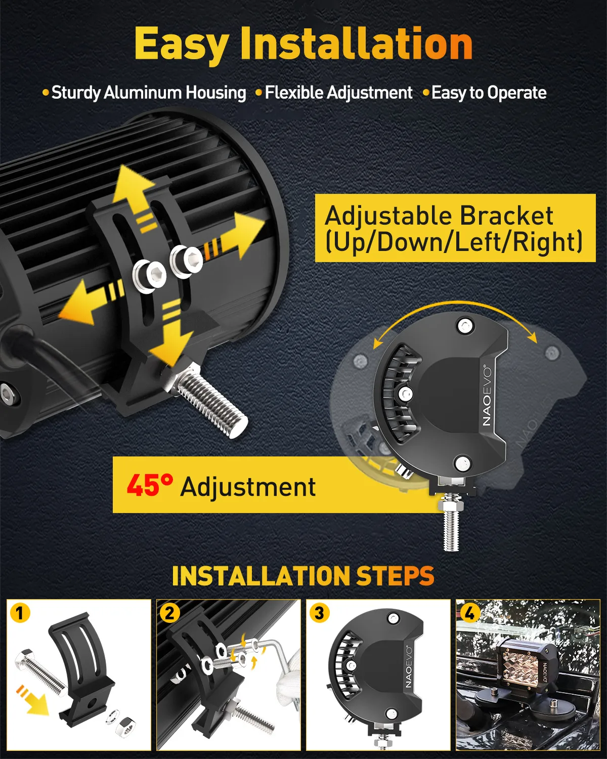 NAOEVO 4" LED Work Light Bar – 12/24V Spotlight for Vehicles, Boats & Heavy Equipment