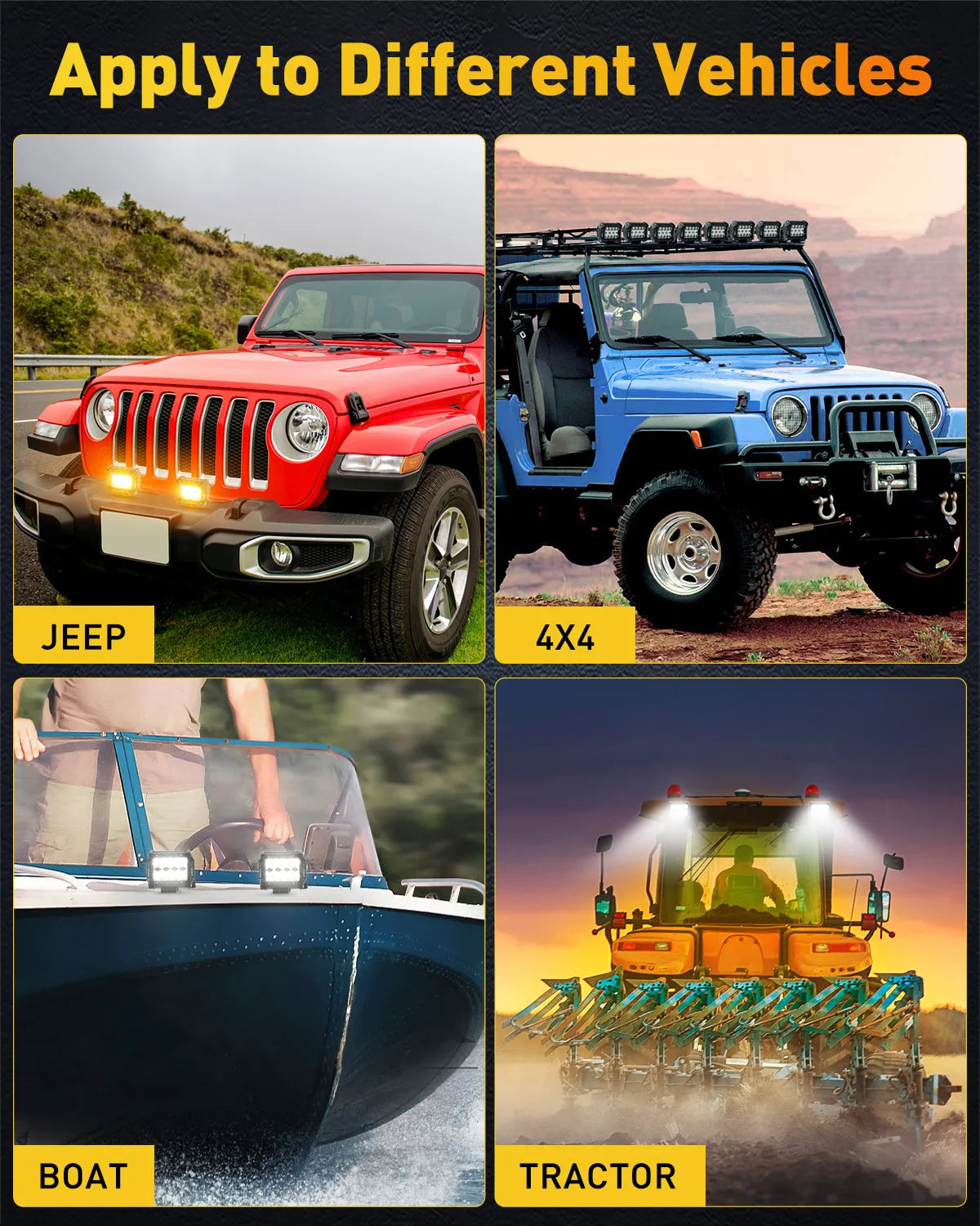 With IP68 grade high-strength waterproof function, it can work freely even in bad weather such as rain or snow weather; The aluminum shell is used for fast heat dissipation, making it more sturdy and durable; The diamond-shaped light beads and spot light beads are made using high-quality SMD3030 light chips and durable PC lens, which is more explosion-proof compression and high temperature resistance.